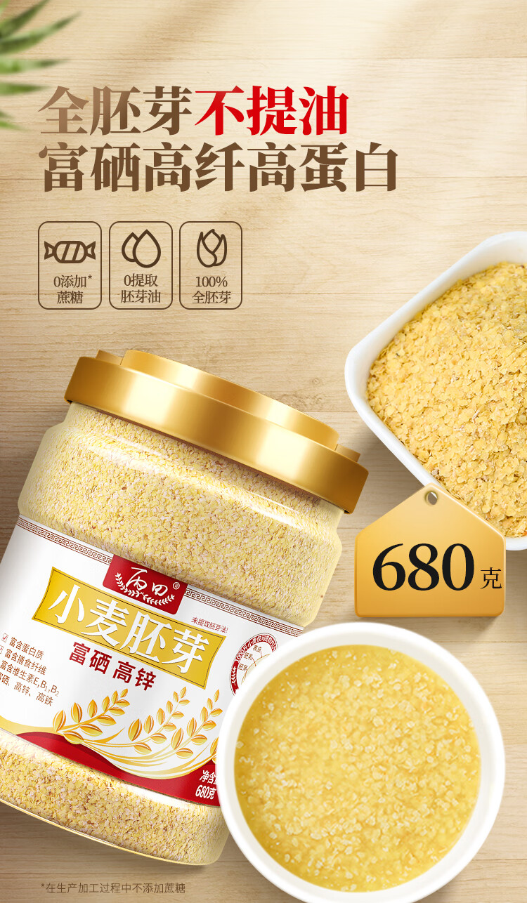 商品名称:丙田 正宗金黄小麦胚芽680g/罐富硒高锌无加蔗糖原味燕麦片胚芽粉即食
