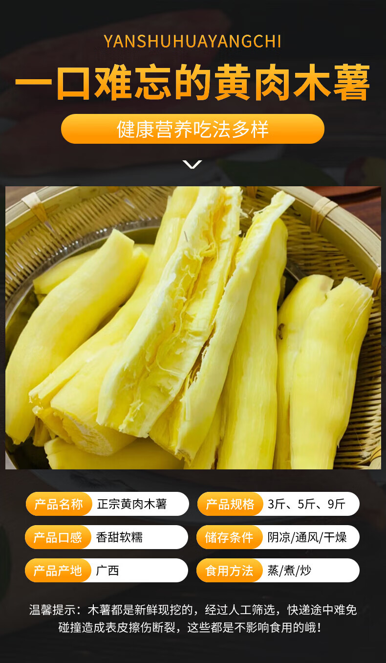 商品名称:黄肉木薯新鲜现挖10斤广西特产黄心面包木薯羹糖水板栗农家 3斤