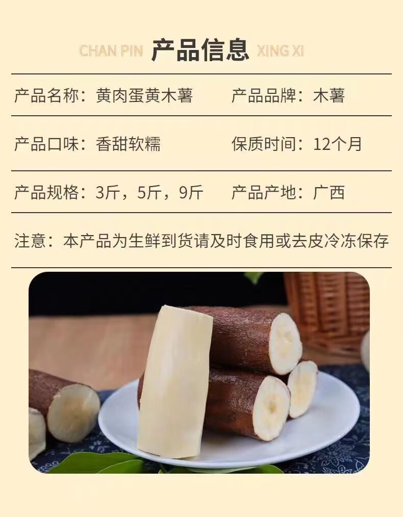 商品名称:黄心木薯广西特产生鲜黄肉面包粉糯加冰袋真空发货 去皮真空包装-4.5斤