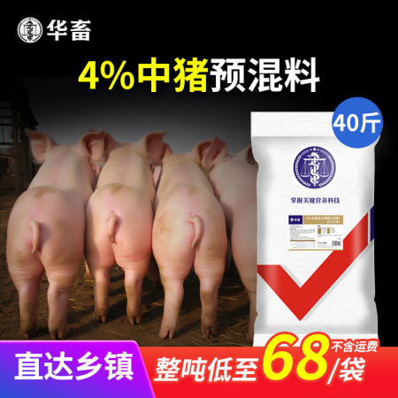 商品名称:华畜4%中猪预混料仔猪饲料小猪生长猪催肥育肥大猪复合饲料厂家 中猪育肥猪【整吨低至68/袋】