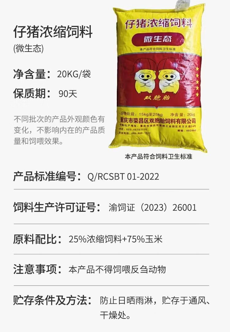 商品名称:双胞胎猪饲料猪用小猪中猪专用料高蛋白增肥快速出栏浓缩料正品 双胞胎仔猪浓缩饲料40斤整袋发货